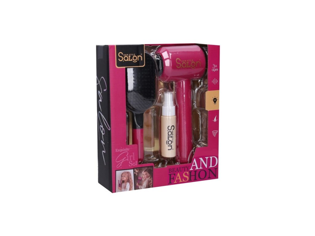 Kadernícka sada s fénom 21 cmSada pre kaderníčky obsahuje kefu na vlasy, fén a sprej (prázdny obal). Fén je funkčný a zapína sa pomocou tlačítka. Svetelné a zvukové efekty. Napájanie: na batérie 2xAA (nie sú súčasťou balenia)Vhodné od 3+