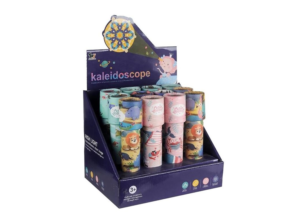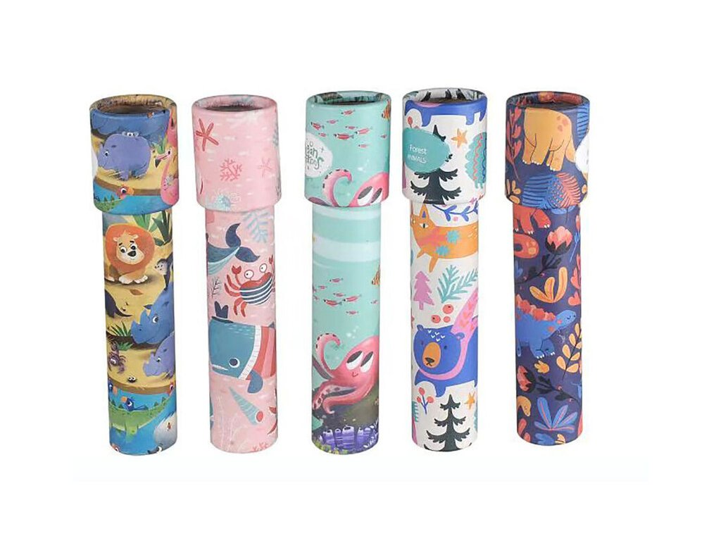Kaleidoskop zvieratká 19cmKaleidoskop vo forme ďalekohľadu umožňuje zazrieť pestrofarebné telieska, ktoré sa vďaka vnútorným zrkadlám usporiadavajú pri otáčaní do rôznych tvarov. Veľkosť 19 cmBalenie : 12 kusovCena je uvedená za 1 kus