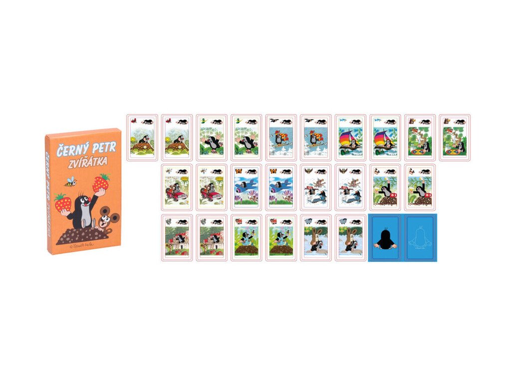 Karty Čierny Peter Krtko zvieratkáHra sa skladá z 31 kariet. Sú rozdelené do dvojíc, z ktorých každá dvojica kariet je označená rovnakým znakom. Len jedna karta sa od ostatných líši a to je Čierny Peter. Vyhráva ten, kto bude mať dvojice vyložené najskôr. Prehráva ten, komu zostane Čierny Peter v ruke. Hra pre: 2-6 hráčovVhodné od 3+