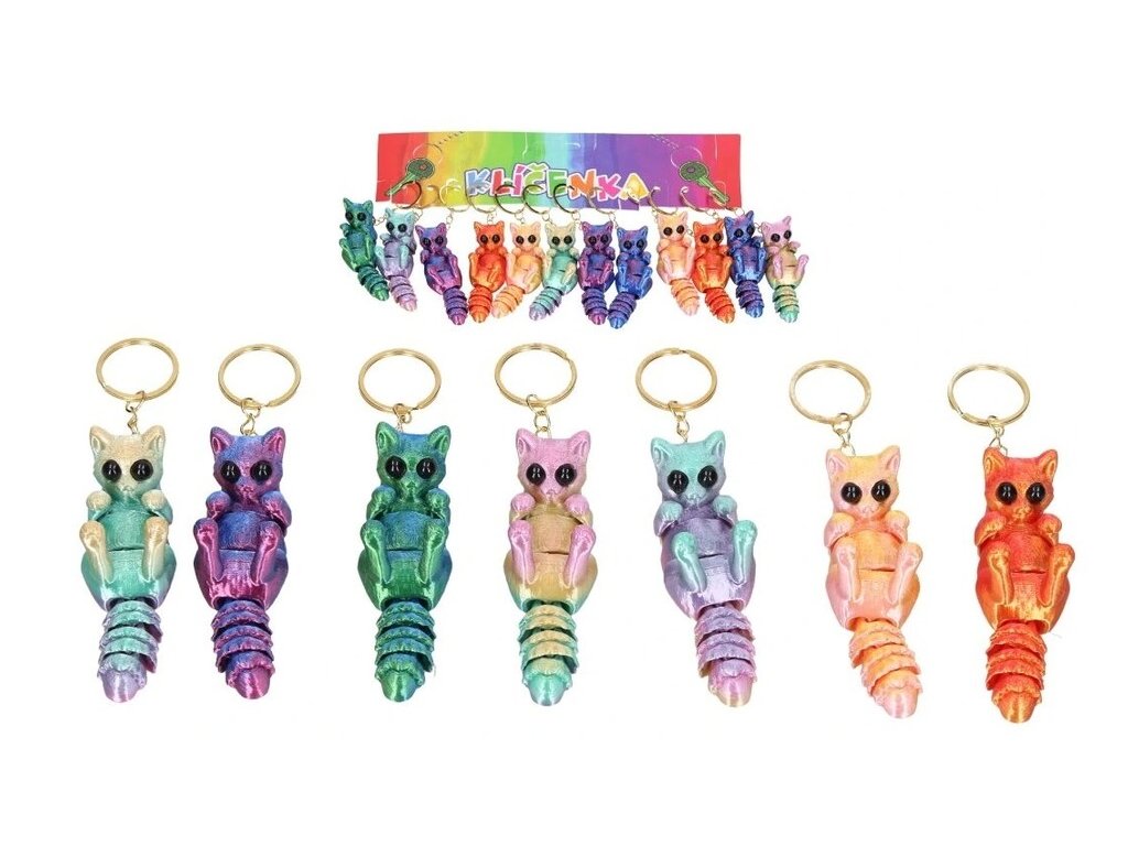 Kľúčenka 3D mačkaKľúčenka v tvare mačky. Veľkosť mačky 8 x 2,5 cm. Veľkosť celej kľúčenky 13 cmRôzne farby, ak si želáte konkrétnu farbu napíšte do poznámky k objednávkeUvedená cena je za 1ksV prípade celého balenia obsah 12 ks