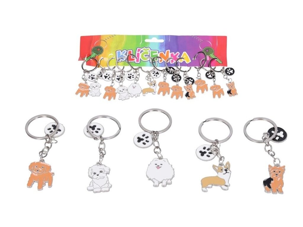 Kľúčenka tlapka a pesKľúčenka v tvare psíka s medailónom tlapky. Veľkosť celej klúčenky 9 cmRôzne druhy, ak si želáte konkrétny druh napíšte do poznámky k objednávkeUvedená cena je za 1ksV prípade celého balenia obsah 12 ks