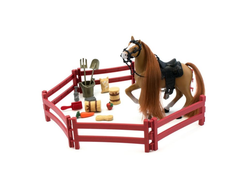 Kôň s doplnkami Royal Breeds 17 cmSplň si svoj sen a kúp si krásneho koníka. Vďaka tejto sade dostaneš všetko, čo potrebuješ pre správnu starostlivosť o neho. Obsah balenia: kefavedierkostajňakôňlopatavidleostatné drobné príslušenstvoVeľkosť: 17 cmFarba: iba hnedý !
