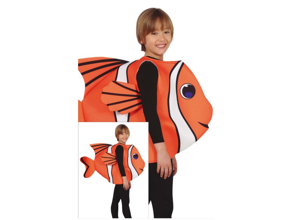 Kostým NEMO je vyrobený z kvalitných materiálov, ktoré sú pohodlné na nosenie a zaručuje optimálny pohyb díeťaťa. Tento kostým NEMO obsahuje elegantný čierne a oranžové farby, ktoré pripomínajú rybyčku Nema, hlavní postavu filmu.