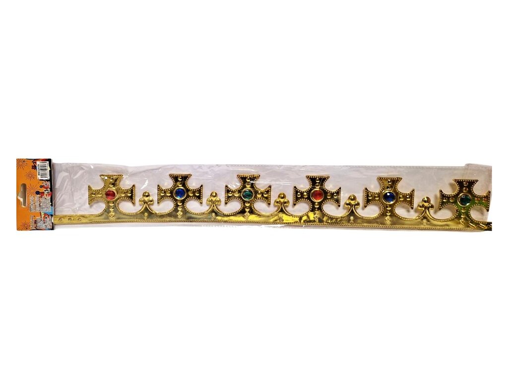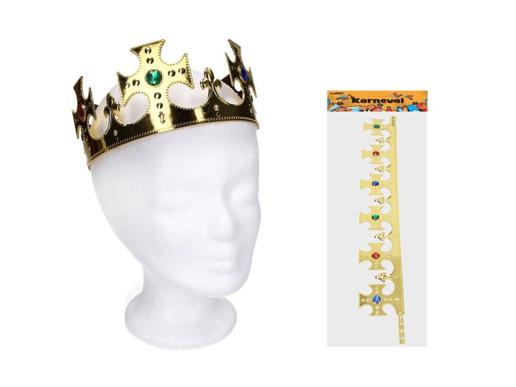 Koruna pre kráľa Zlatá alebo strieborná kráľovská koruna má veľkosť pred poskladaním 59 x 7,5 cm. Veľkosť obvodu je možne regulovať.Veľkosť: 59 x 7,5 cm