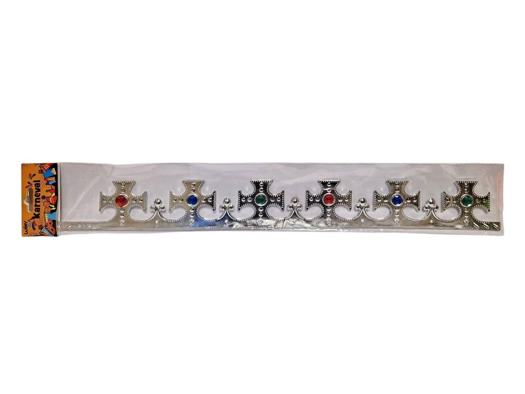Koruna pre kráľa Zlatá alebo strieborná kráľovská koruna má veľkosť pred poskladaním 59 x 7,5 cm. Veľkosť obvodu je možne regulovať.Veľkosť: 59 x 7,5 cm