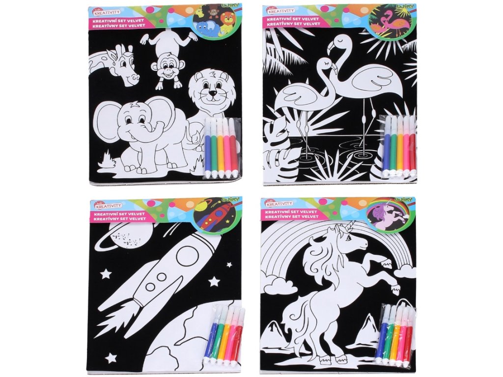 Kreatívna zamatová sada VelvetObjavte zábavnú kreatívnu zamatovú sadu s rozmerom 20 x 25,5 cm s 5 fixkami na jednoduché tvorenie. Ideálne pre deti aj začiatočníkov – zamatový povrch uľahčuje vyfarbovanie, farby neprekračujú okraj a výsledok vyzerá profesionálne.Tvorenie podporuje jemnú motoriku, sústredenie a fantáziu. Zamatový (velvet) povrch vytvára vystúpenú kontúry. Sada je skvelá na tvorenie doma, v škole aj ako originálny darček.V balení nájdete farebné komponenty a 5 fixiek. K dispozícii je viac motívov, takže si vyberie každý malý aj veľký tvorca. Rozmer: 20 x 25,5 cm Balenie obsahuje: obrázok, 5 fixiekVhodné od 3+Mix vzorov, dodávame náhodným výberom podľa skladovej dostupnosti. Ak si želáte konkrétny motív, napíšte do poznámky pri objednávke.