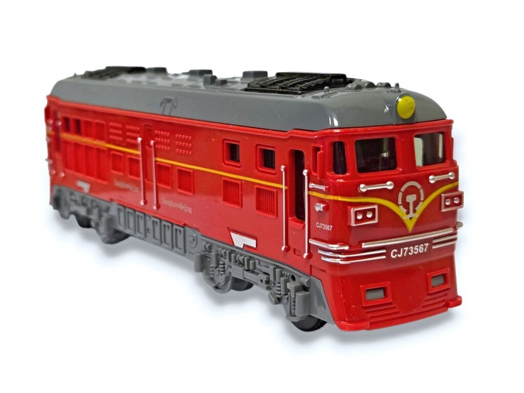 Vlak na zotrvačník 18 cmModel lokomotívy na zotrvačník. Farby: modrá, zelená, červenáVeľkosť: 18 x 4 x 6 cmUvedená cena je za 1 ksV prípade celého balenia 8 ks