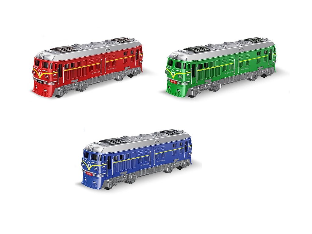 Vlak na zotrvačník 18 cmModel lokomotívy na zotrvačník. Farby: modrá, zelená, červenáVeľkosť: 18 x 4 x 6 cmUvedená cena je za 1 ksV prípade celého balenia 8 ks