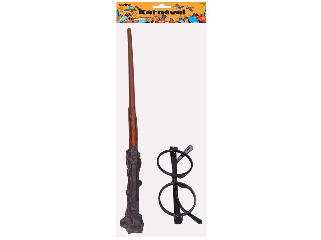 Magická palička s okuliarmi v štýle Harryho PotteraKúzelná palička, ktorá je vhodná na karneval, halloween a podobné sviatky. Skvelo sa hodí ku čarodejníckemu kostýmu. Materiál plastČarovná palička 44 cmOkuliare (rám)