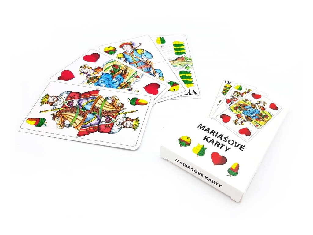 Mariášové karty papier 32 ksMariášové karty v klasickom vyobrazení v papierovej krabičke. Určené na hru farár a mnohé ďalšie.Vhodné na cestovanie a dovolenku.Materiál: lesklý kartónPočet hráčov: 2+Počet kariet: 32