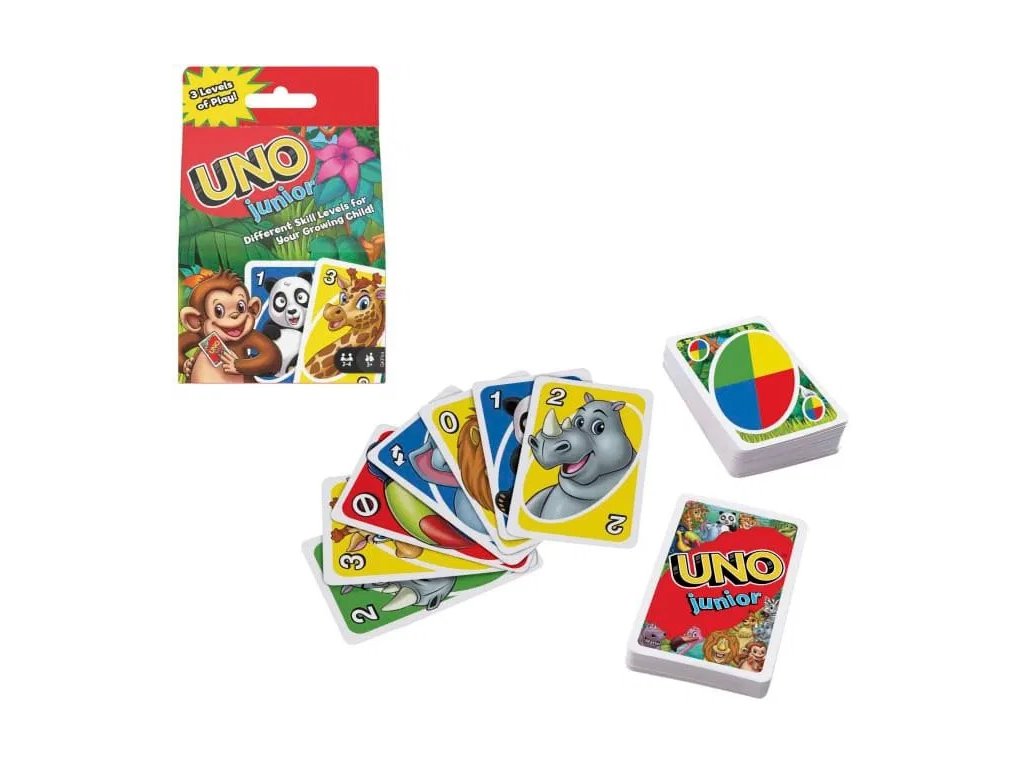 Mattel UNO karty Junior zvieratkáZjednodušený variant známej kartovej hry UNO. UNO Junior s roztomilými zvieratkami je upravené tak, aby s ním mohli hrať deti už od 3 rokov. Pri hre totiž nemusia pracovať len s číslami, ale orientujú sa aj podľa obrázkov. Princíp hry je rovnaký ako v klasickej hre UNO, musíte sa zbaviť všetkých kariet z ruky skôr ako ostatní. A nezabudnite pri poslednej karte povedať "UNO", inak nevyhráte... Nechajte sa pri hre sprevádzať roztomilými zvieratkami. Hra je určená pre 2-4 osôbVhodné od 3 rokov