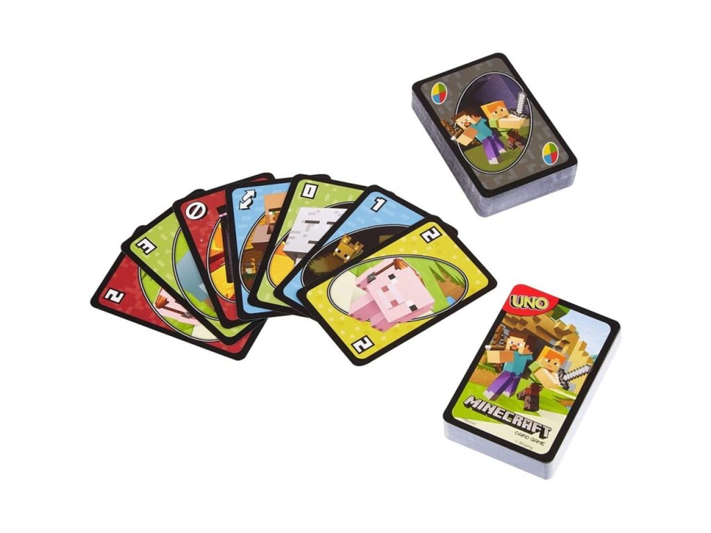 Mattel UNO karty MinecraftUNO Minecraft navyše prináša nový typ akčnej karty. Pokiaľ si vytiahnete kartu Creeper, ukážte ju protihráčom a oni si budú musieť vziať tri karty! Víťazom sa stáva hráč, ktorý ako prvý získa 500 bodov. Akonáhle vám v ruke zostáva posledná karta, nezabudnite zakričať „UNO“! Súčasťou setu je 112 kariet a návod.Hra je určená pre 2 až 10 hráčov.Vhodné pre deti od 7 rokov.