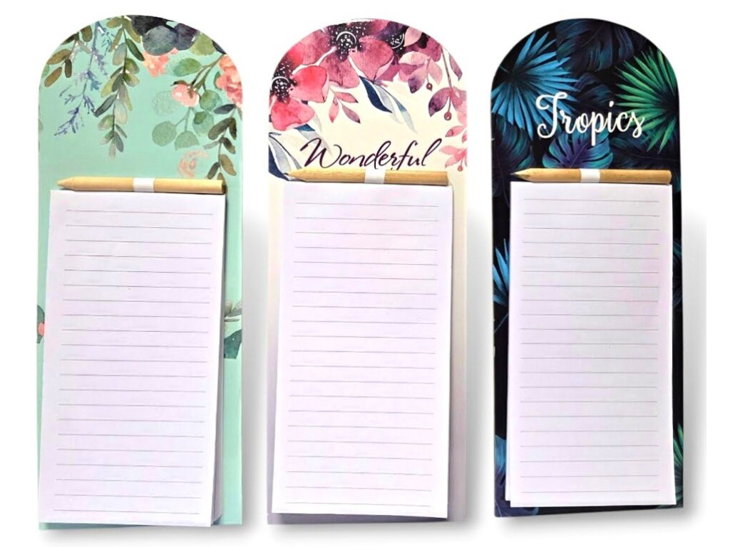 Notes 40 strán na magnet s ceruzkou Linajkový notes na rýchle poznámky alebo nákupný zoznam. Mix vzorov. Na magnet. Veľkosť: 10,5 x 27,5 cm40 linajkových strán, ceruzkaMix vzorov: citrón-limetka, čučoriedka, avokádo, avokádo-Let´s eat!, banán, citrón hello!Ak si želáte konkrétny vzor, napíšte do poznámky pri objednávke.