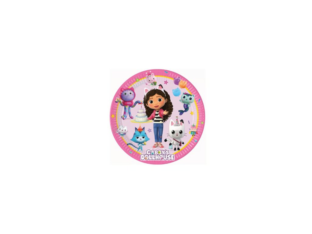 Pestrofarebné a hravé papierové taniere zo série Gabby´s Dollhouse. 20 cm priemer poskytuje dostatočný priestor pre slávnostné posedenie, detské oslavy či rodinné stretnutia — štýlovo, bez plastov a s ohľadom na životné prostredie.