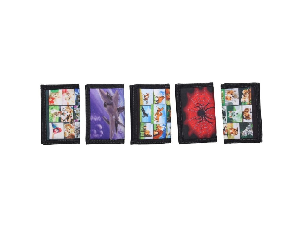 Peňaženka na suchý zips 12,5 x 8 cm Látková peňaženka na suchý zips s priehradkami na doklady, mince a papierové peniaze. Veľkosť: 12,5 x 8 cm (rozložená 25 cm)Mix motívov: momentálne dostupná s motívom kone a stíhačkaUvedená cena je za 1ks
