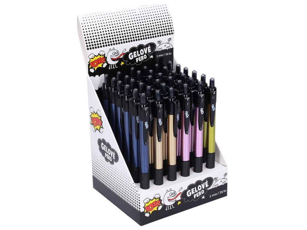 Pero gélové modréHrúbka hrotu 1 mm, farba tuhy modrá, ergonomický tvarovaný gumený úchyt pre pohodlné písanie, vymeniteľná náplň modrej farby. Balenie: 36 ksUvedená cena je za 1 ks pera