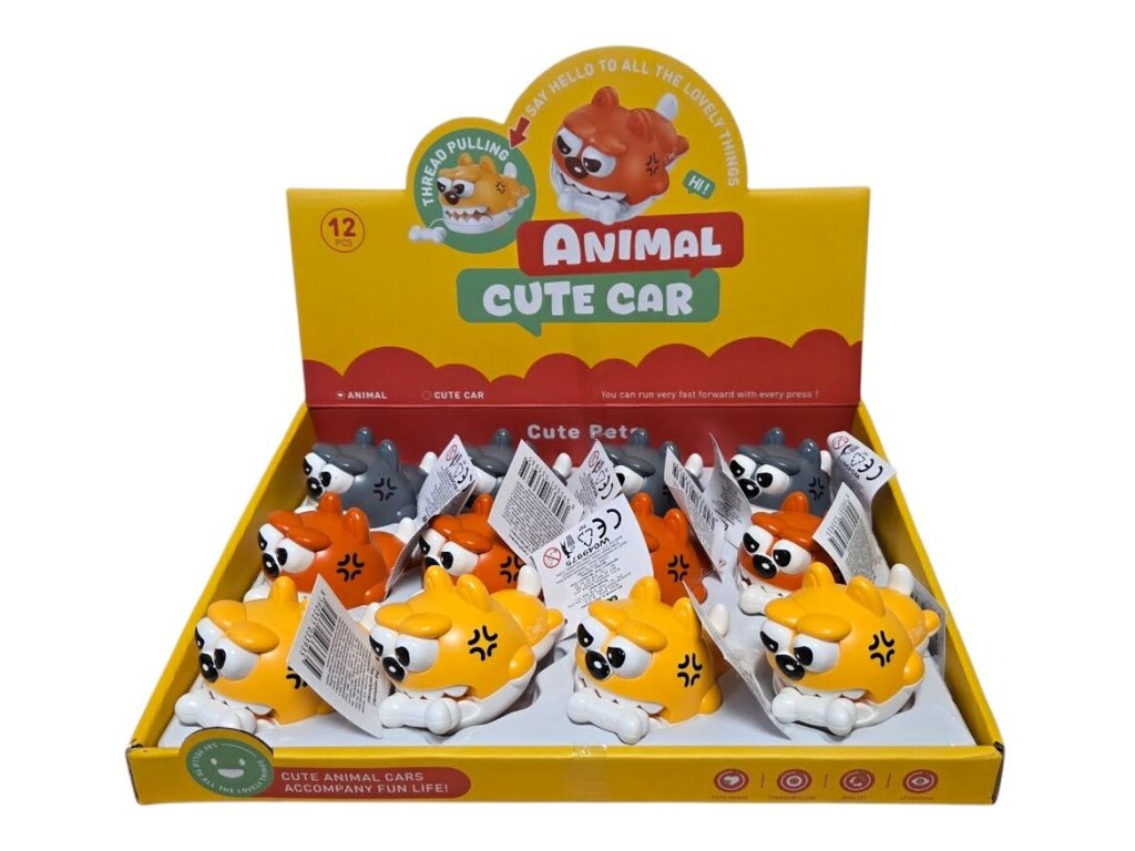 Pes na natiahnutie 8cmFarebný psík na naťahovanie. Po natiahnutí začne psík chodiť pomocou koliesok. Veľkosť: 8 cmUvedená cena je za 1 kusV prípade balenia obsah 12 ksFareby: žltá, oranžová, sivá