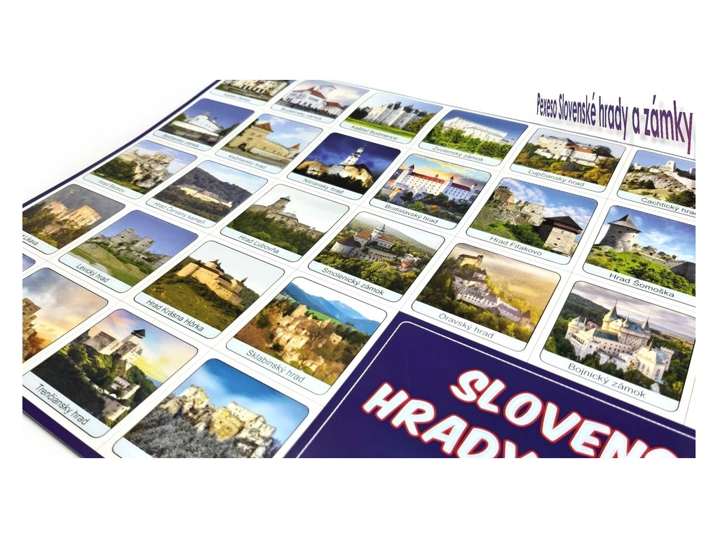 Pexeso Slovenské hrady a zámky 32 dvojicPexeso je jednou z najznámejších a najobľúbenejších detských hier. Deti si pri hre precvičujú pamäť, postreh, farby, učia sa trpezlivosti a hre v kolektíve.Pexeso obsahuje 32 dvojíc s rovnakými obrázkami, hra je určená pre 2-4 hráčov. Veľkosť kartičiek 4,9 x 4,9 cm