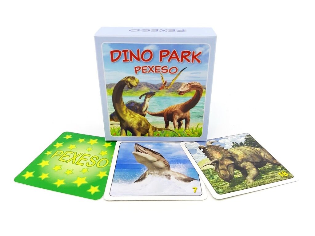 Pexeso Dino Park 64 ksPexeso je jednou z najznámejších a najobľúbenejších detských hier. Deti si pri hre precvičujú pamäť, postreh, farby, učia sa trpezlivosti a hre v kolektíve.Pexeso obsahuje 32 dvojíc s rovnakými obrázkami, hra je určená pre 2-4 hráčov. Veľkosť karty: 6,4 x 6,4 cm