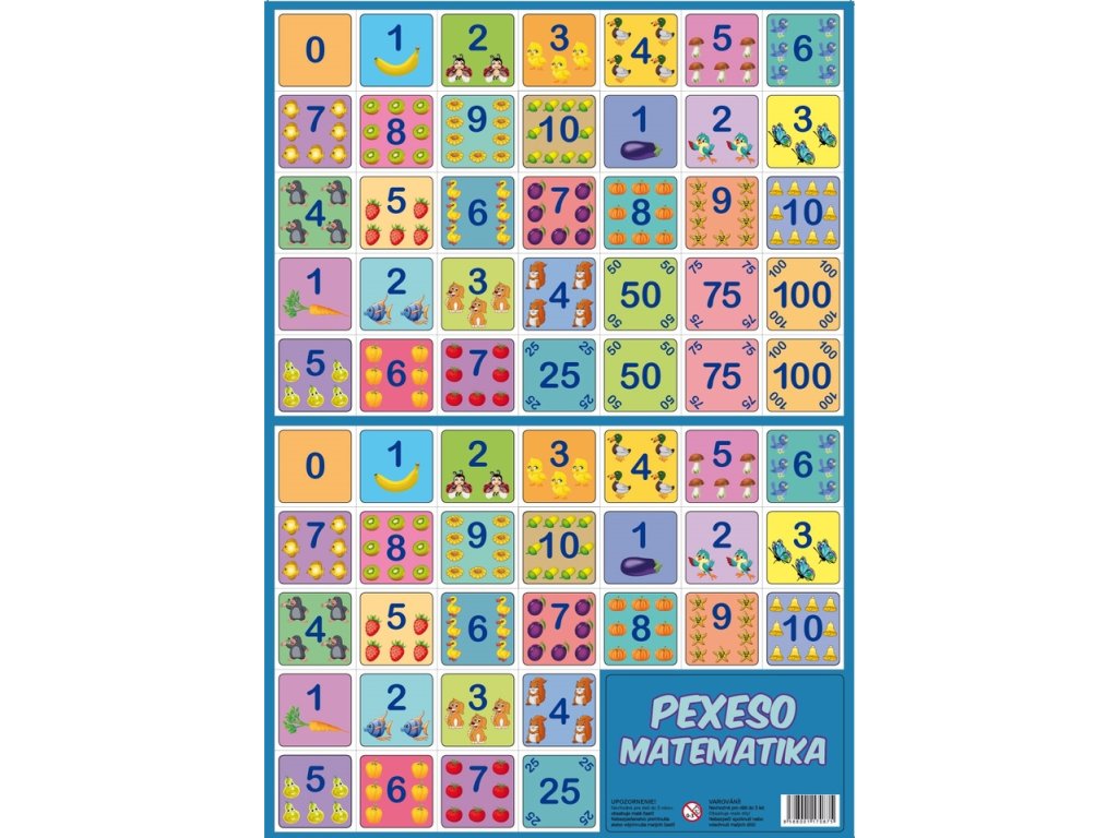 Pexeso Matematika 32 dvojícPexeso je jednou z najznámejších a najobľúbenejších detských hier. Deti si pri hre precvičujú pamäť, postreh, farby, učia sa trpezlivosti a hre v kolektíve. Pexeso obsahuje 32 dvojíc s rovnakými obrázkami, hra je určená pre 2-4 hráčov. Veľkosť kartičiek: 4,9 x 4,9 cm