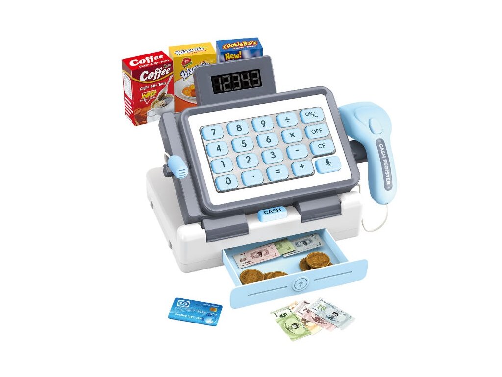 Pokladňa s efektmi modrá 25cmHračka, ktorá prinesie deťom veľa zábavy pri hre na obchod. Pokladňa je vybavená zvukovými efektmi, ktoré hru spríjemnia a spravia ju realistickejšou. Veľkosť 25 x 15 x 18.5 cmFunkcia kalkulačky, mikrofón, otváracia zásuvka na peniaze.Batérie 3xAA nie sú súčasťou.