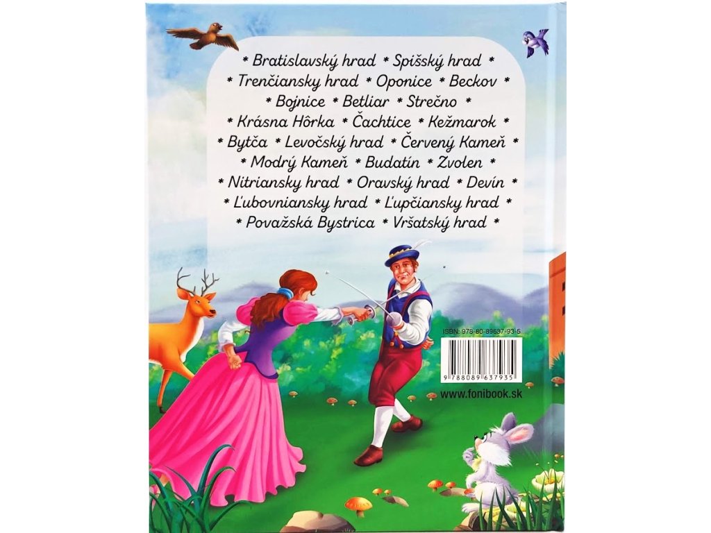Povesti o slovenských hradochPovesti o slovenských hradoch s krásnymi ilustráciami: Bratislavský hrad, Spišský hrad, Trenčiansky hrad, Oponice, Beckov, Bojnice, Betliar, Strečno, Krásna Hôrka, Čachtice, Kežmarok, Bytča, Levočský hrad, Červený Kameň, Modrý Kameň, Budatín, Zvolen, Nitriansky hrad, Oravský hrad, Devín, Ľubovniansky hrad, Ľupčiansky hrad, Považská Bystrica, Vršatský hrad. Jazyk: SlovenskýVäzba: pevnáPočet strán: 66