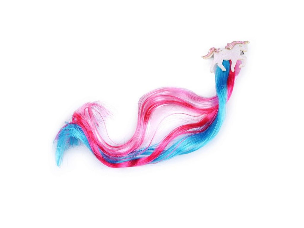 Dúhové pramienky vlasov na sponke s jednorožcom potešia predovšetkým malé slečny.
