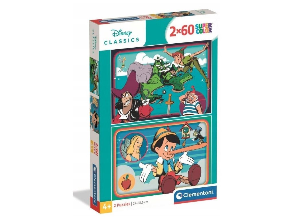 Puzzle 2x60 Disney Klasika ClementoniObrázkové detské puzzle, ktoré si môžu deti poskladať z 2 x 60 dielikov. Sú ideálne pre učenie farieb, tvarov a vzorov, a poskytujú zábavu, ktorá trvá hodiny. Clementoni je jedným z najväčších výrobcov puzzle na svete. Presnosť jednotlivých dielikov, optimálne rozlíšenie pri tlači a odolnosť materiálu potvrdzujú dlhoročnú kvalitu týchto výrobkov. Prednosti: trénujú vizuálnu pamäť, jemnú motoriku, učí manuálnej zručnosti a trpezlivostiPočet dielov: 2 x 60 ks (2 obrázky)Rozmery obrázka: 27 x 19 cmOdporúčaný vek : 4+