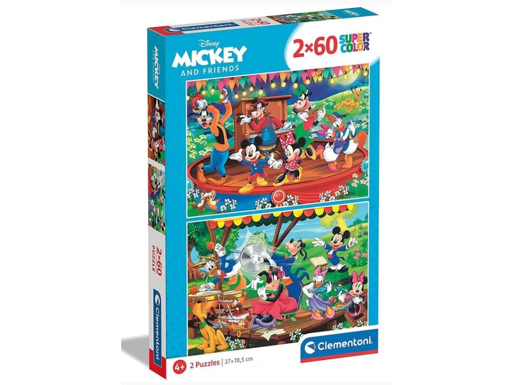 Puzzle 2x60 Mickey a priateľia Clementoni Obrázkové detské puzzle, ktoré si môžu deti poskladať z 2 x 60 dielikov. Sú ideálne pre učenie farieb, tvarov a vzorov, a poskytujú zábavu, ktorá trvá hodiny. Clementoni je jedným z najväčších výrobcov puzzle na svete. Presnosť jednotlivých dielikov, optimálne rozlíšenie pri tlači a odolnosť materiálu potvrdzujú dlhoročnú kvalitu týchto výrobkov. Prednosti:trénujú vizuálnu pamäť, jemnú motoriku, učí manuálnej zručnosti a trpezlivostiPočet dielov: 2 x 60 ks (2 obrázky)Rozmery obrázka: 27 x 19 cmOdporúčaný vek : 4+