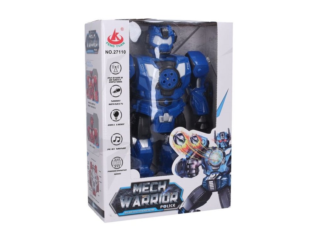 Robot strieľajúce šípky RC na diaľkové ovládanie 33,5 cmRobot strieľajúci šípky RC na diaľkové ovládanie. Rozmery 24x10,5x33,5 cm.Infračervený port.Súčasťou 5 šípok.Svetelné a zvukové efekty. 4xAA batérie do robota, 2xAA do ovládača nie sú súčasťou.Tlačidlo demo v páse robota.Prepínač ON/OFF na zadnej strane robotaVek: 3+Funkcia : strieľanie šípok, programovanie, demo režim, chôdza, kĺzanie, tanec, hudba.