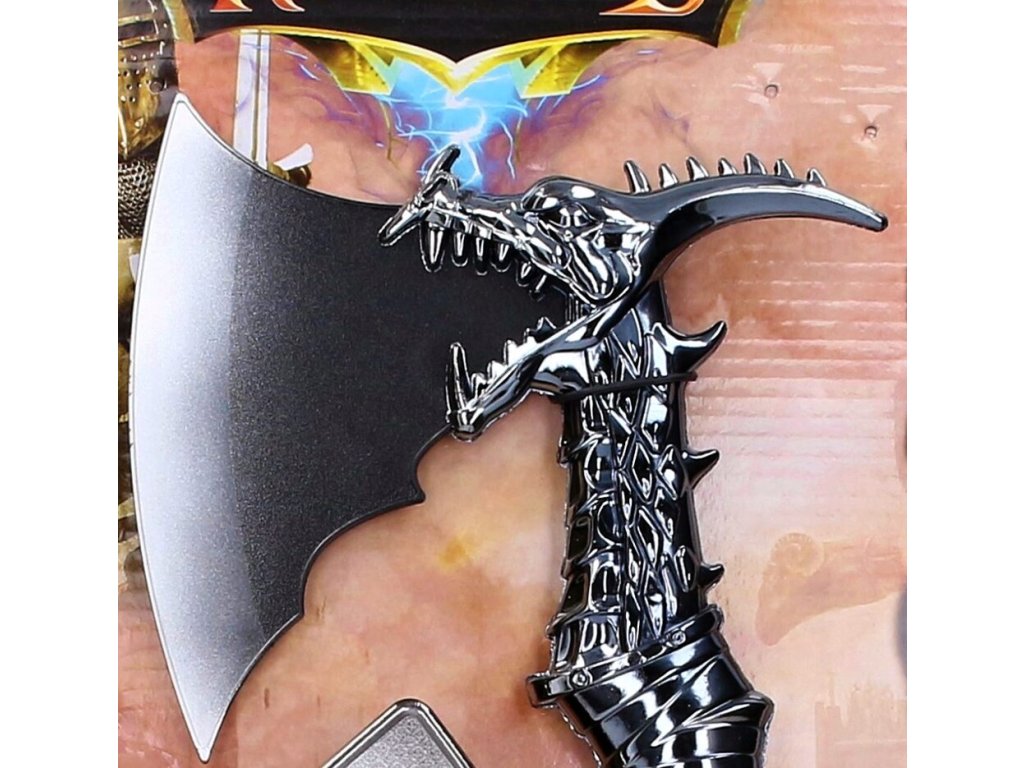 Rytierska rukavica a sekeraSada vhodná aj ako karnevalový doplnok. Veľkosť sekery 33 cmRukavica veľkosti 24 cmMateriál: plast
