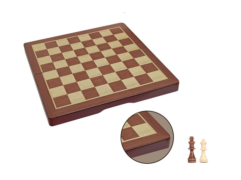 Šachy drevené 29 cm Šach drevený. Šachovnica má magnetické zatváranie aj figúrky. Každá figúrka má zospodu filc pre tichý pohyb po šachovnici. Figúrky je možné uložiť dovnútra do šachovnice. Vhodná aj na cestovanie. Veľkosť šachovnice: 29 x 29 x 2,5 cmHra pre dvoch hráčovVhodné od 5+