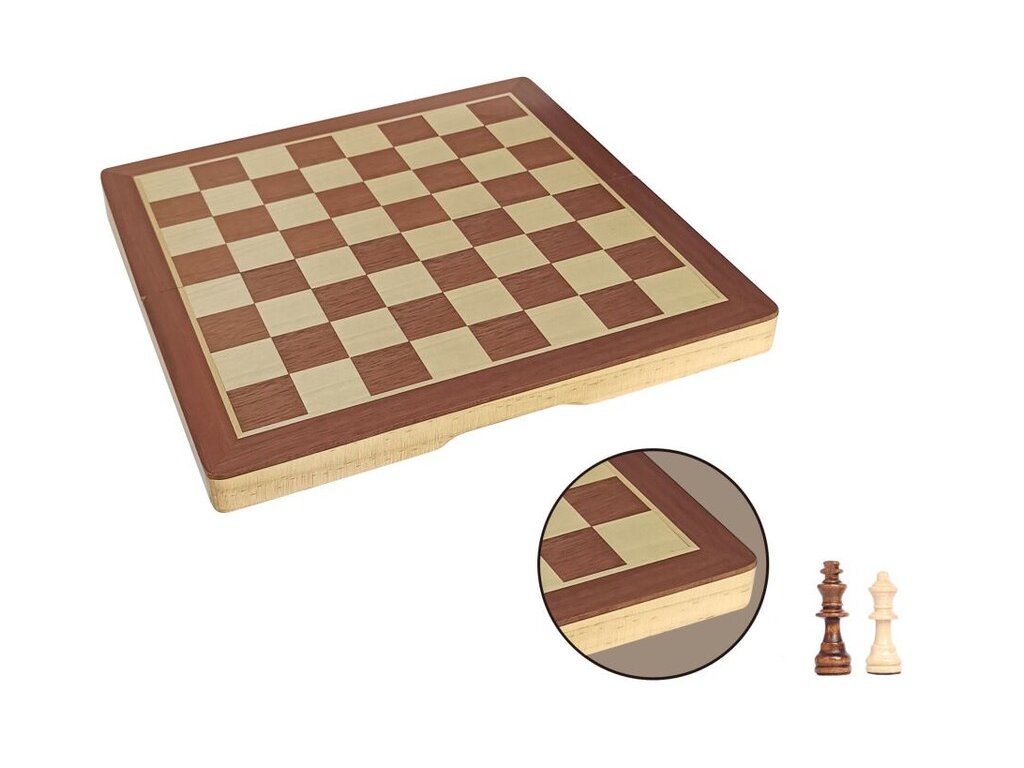 Šachy drevené 39 cmŠach drevený. Šachovnica má magnetické zatváranie aj figúrky. Každá figúrka má zospodu filc pre tichý pohyb po šachovnici. Figúrky je možné uložiť dovnútra do šachovnice. Vhodná aj na cestovanie. Veľkosť šachovnice: 39 x 39 x 5 cmHra pre dvoch hráčovVhodné od 5+