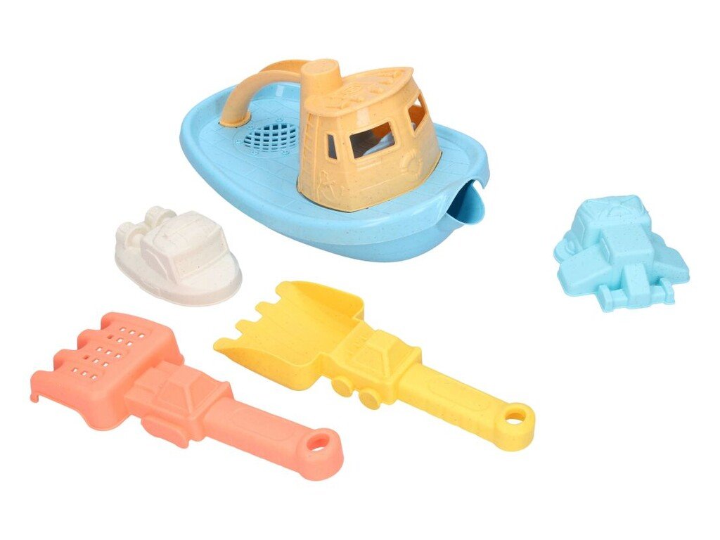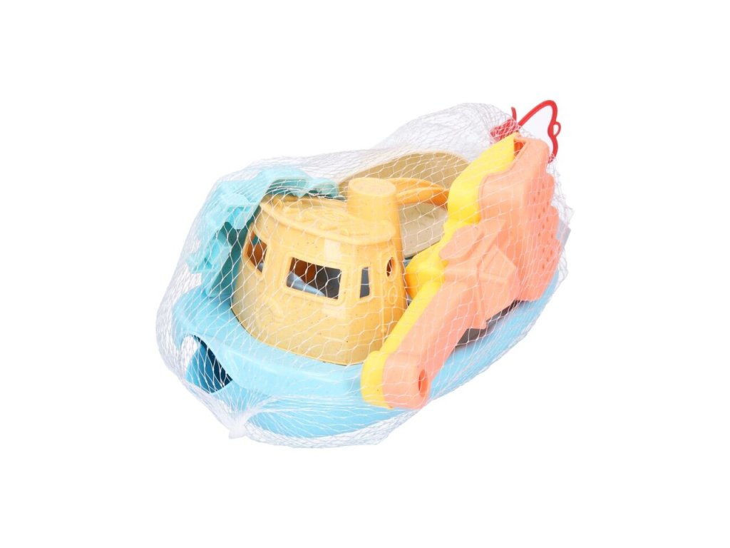 Sada do piesku s loďkou 5ksSúprava do piesoku s loďou a príslušenstvom. Rozmery loďky : 24 x 14 cmSúčasťou balenia: lopatka, 2 x formička, hrable
