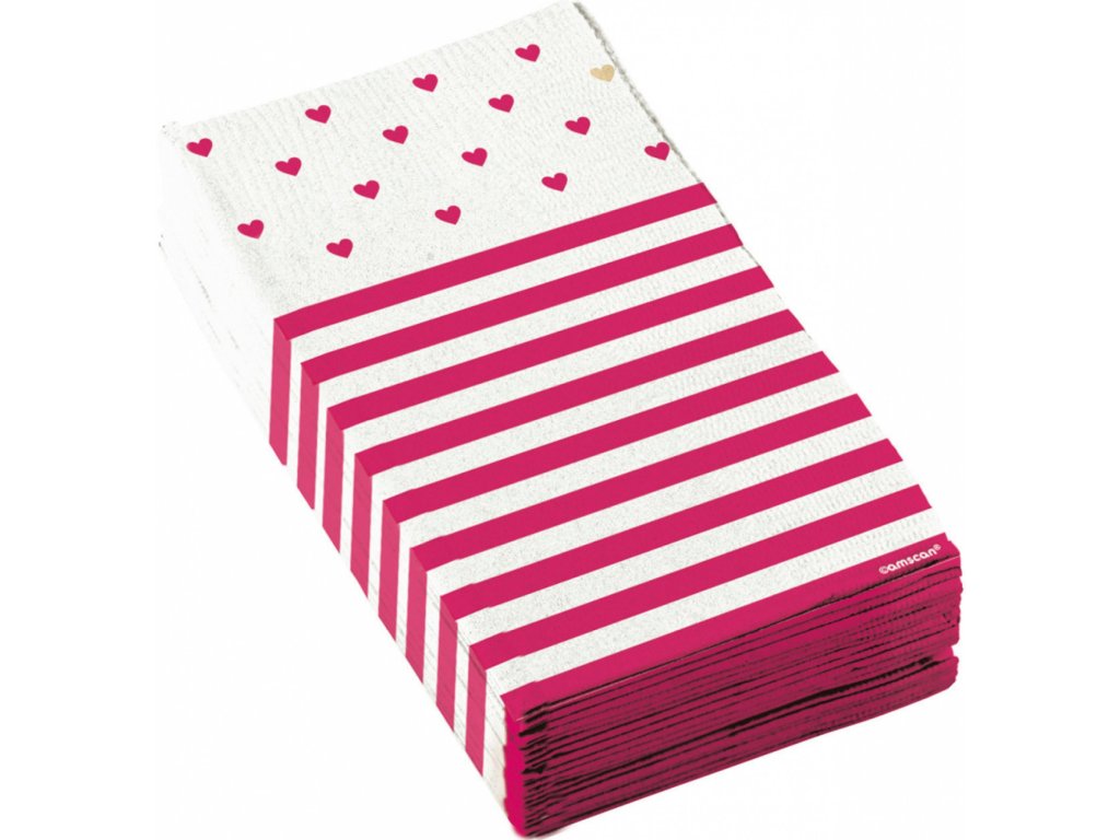 Bufetové obrúsky s ružovými srdiečkami, 33 x 33 cm, troj-vrstvové. V balení 16 ks.