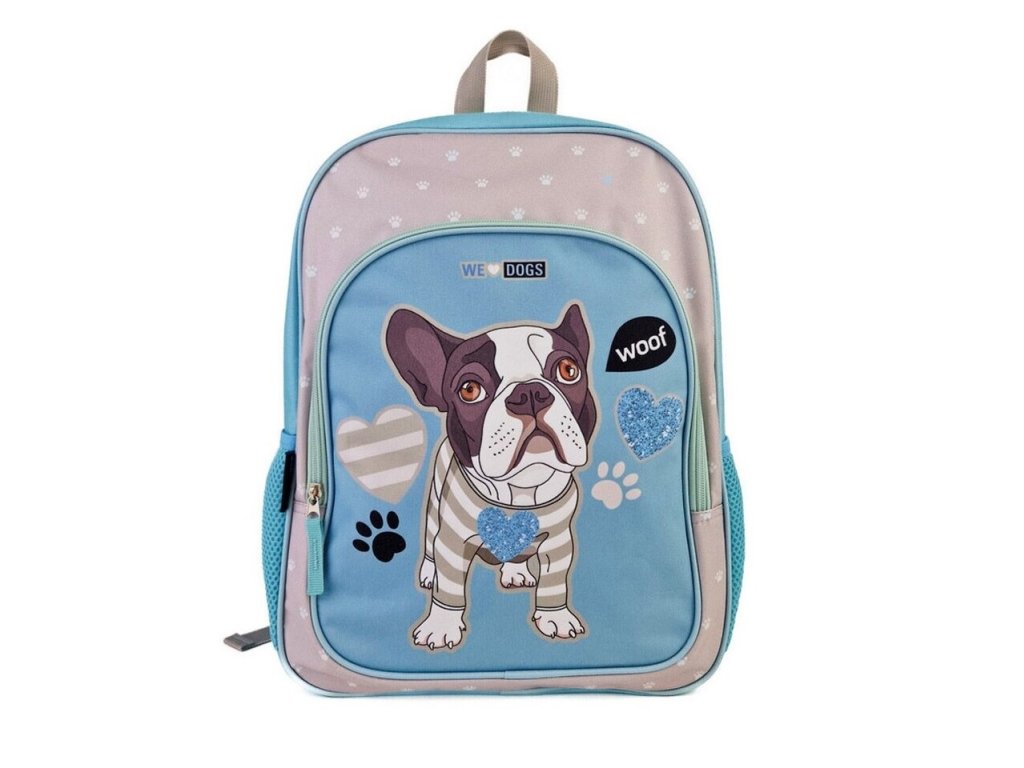 Školský batoh na chrbát modrý DogsŠkolský batoh Dogs modrý je navrhnutý tak, aby zapôsobil na najmenších školákov alebo škôlkárov. Má dve predné priehradky na zips a dve bočné vrecká. Batoh je dodávaný bez príslušenstva. 2 priehradky na zips2 bočné vreckáRukoväť na nosenie v rukeObjem: 16 lMateriál: polyester, textilVeľkosť: 41 x 31 x 13 cm