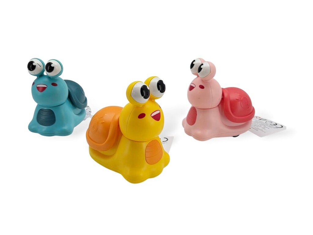 Slimák na natiahnutie 9 cmVeselý slimák sa dostane do pohybu vpred zatlačením panciera. Farby: žltá, ružová, modráMateriál: plastRozmery: 8 x 5,5 x 9 cmUvedená cena je za 1 ksV prípade celého balenia obsah 12 ks