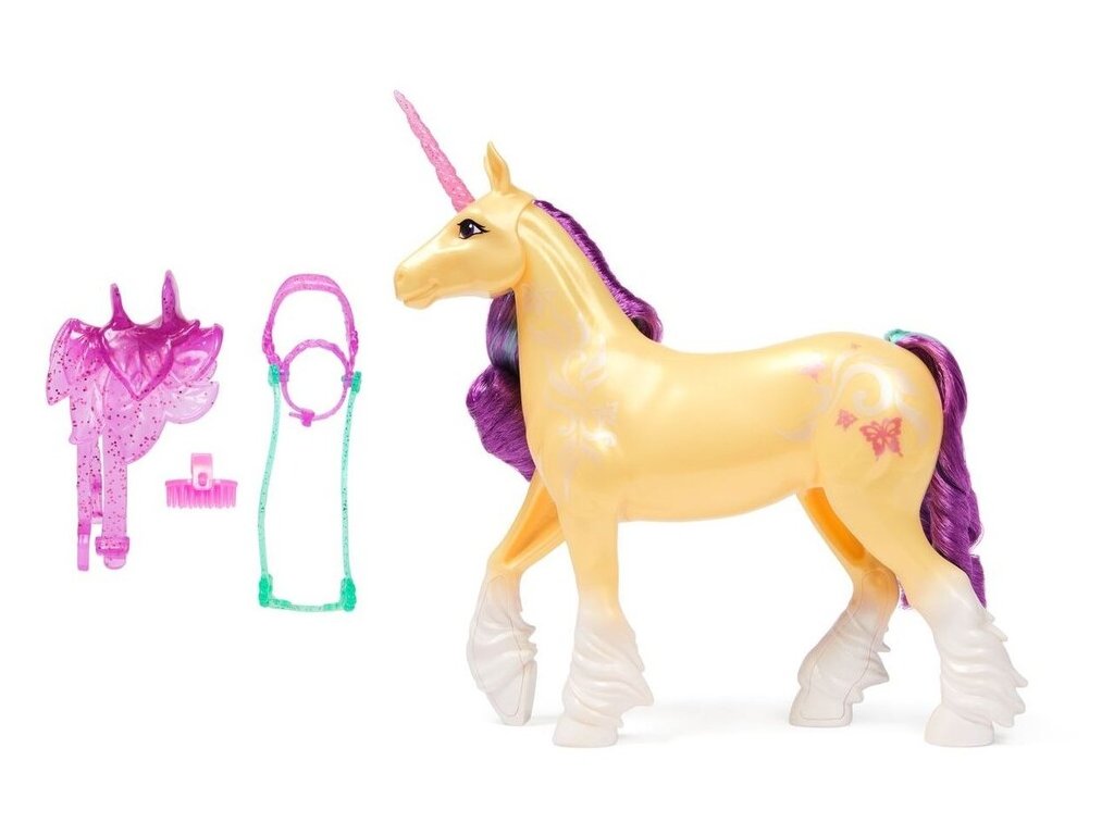 Spin Master Unicorn Academy Česacie Jednorožec 24 cm LeafJednorožec Leaf z kolekcie Unicorn Academy je 24 cm vysoká figúrka s dlhou hrivou určenou na česanie a zdobenie. Súčasťou balenia je kefa a doplnky, ktoré umožňujú upravovať hrivu podľa vlastných predstáv. Vyrobené z kvalitných, zdravotne nezávadných materiálov. Podporuje rozvoj jemnej motoriky a kreatívnu hru.Odporúčaný vek : 4+