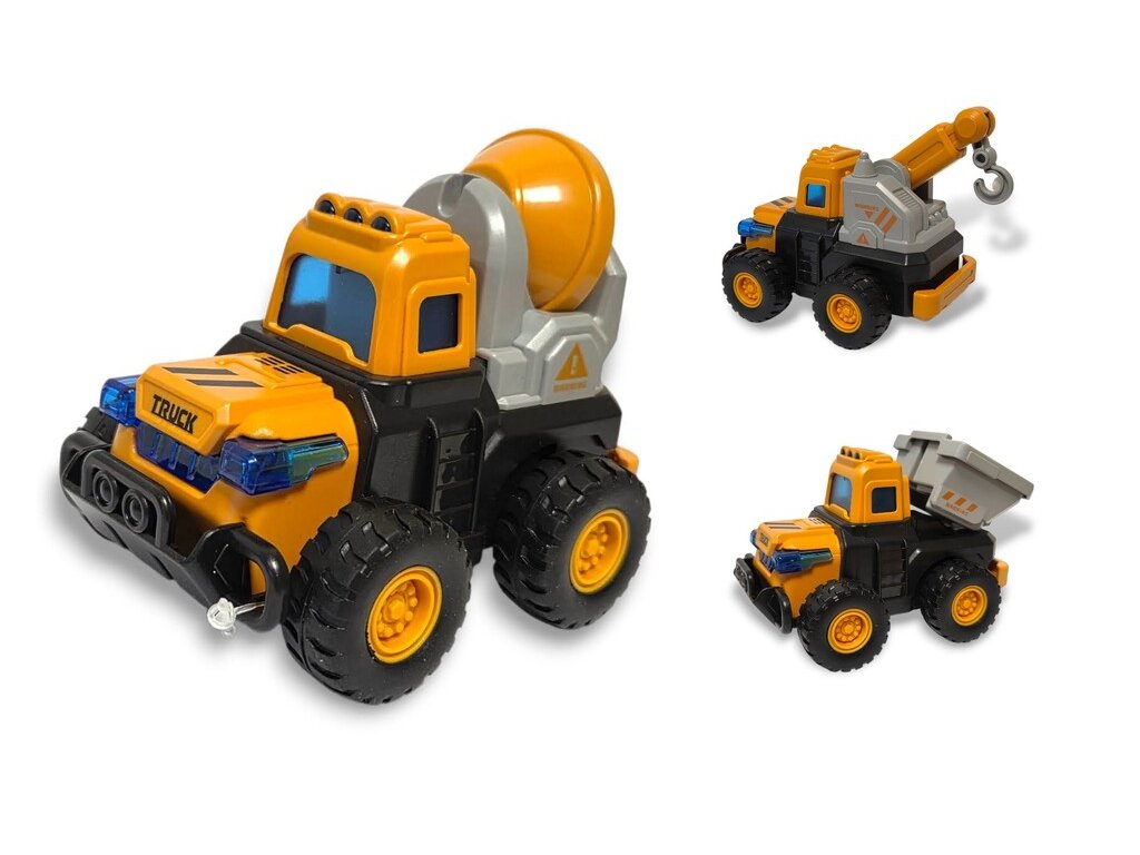 Stavebný stroj na zotrvačníkPracovný stroj s pohyblivými časťami, ako lyžica bágra alebo vyklápanie. Rozmery: 12 x 7,2 x 7,5 cm4 varianty. sklápač,domiešavač, auto s lyžicou, auto s navíjakomCena je uvedená za 1 kusV prípade celého balenia 12 kusov