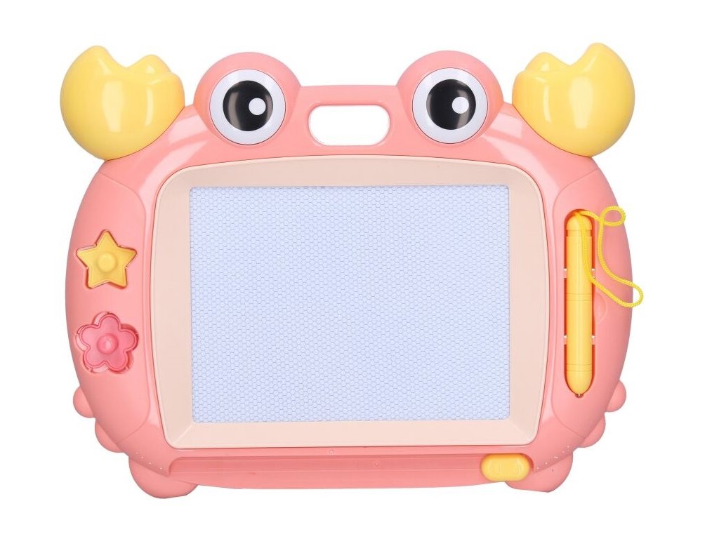 Tabuľa magnetická 33cmFarebná magnetická tabuľka s perom a 2 pečiatkami. Táto tabuľka je najlepší nápad, ako začať s kreslením. Ak sa niečo nepodarí, jedným pohybom obrázok zmažete. Farby: ružová, oranžováVeľkosť tabuľky: 33 cmVhodné pre deti od 3+