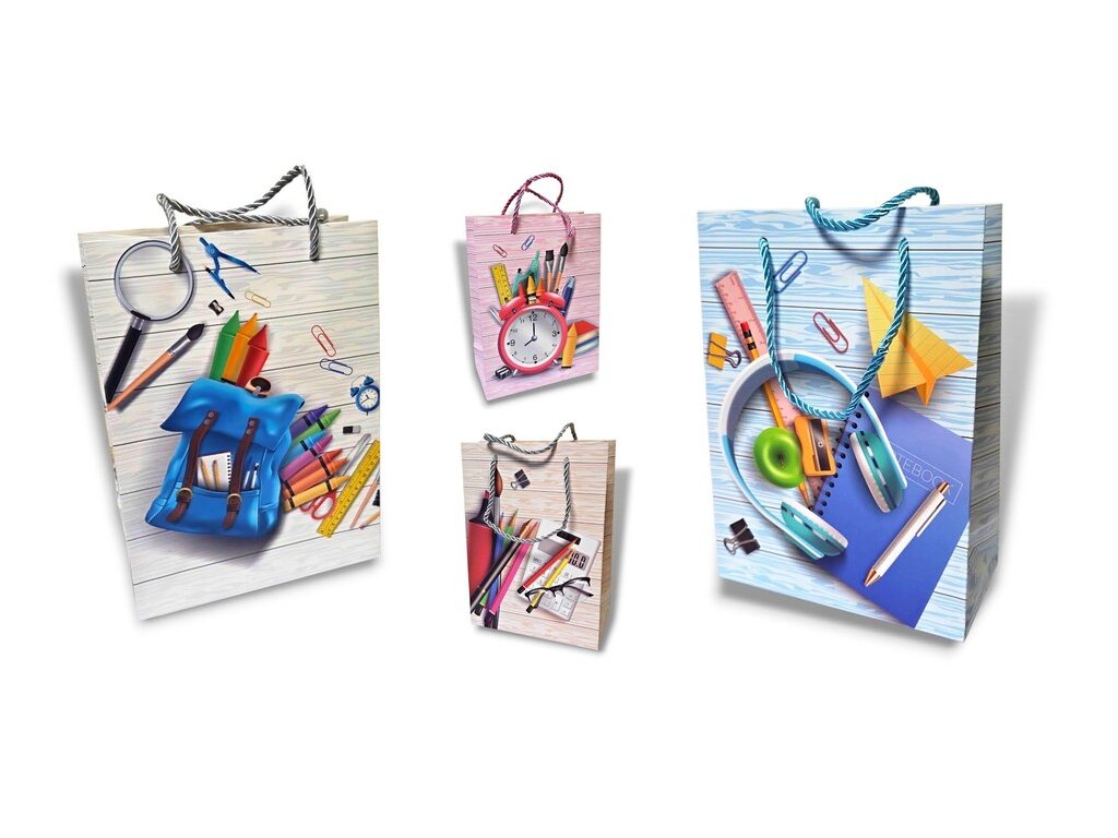 Taška darčeková Škola 17,5 x 8,5 x 24 cmDarčeková taška vyrobená z kvalitného tvrdého papiera s rôznymi motívmi, vhodná na jednoduché balenie suvenírov a darčekov. Rozmery: 17,5 x 8,5 x 24 cmCena je uvedená za 1 kusV prípade celého balenia 12 kusovRôzne motívy, zasielame náhodne podľa skladovej dostupnosti. Ak si želáte konkrétny motív, napíšte do poznámky k objednávke.