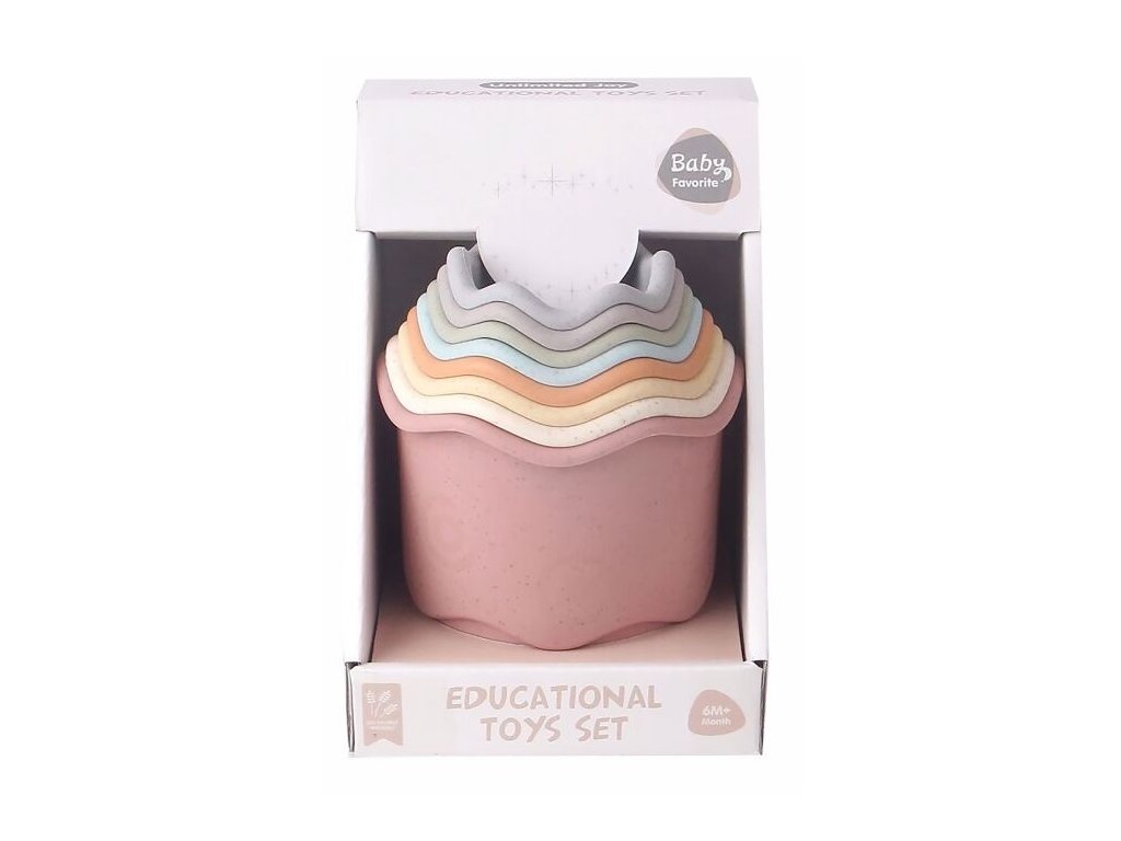 Tégliky stohovacia veža 41cm vlnky 8ksKelímky do vody pre najmenších na spríjemnenie kúpania vo vani alebo v bazéniku. Rozmery postavenej veže :9,8 x 9,8 x 40,8 cmMateriál: plast