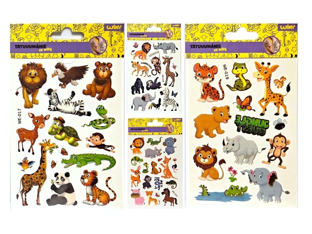 Tetovacie detské nálepky ZOODetské zmývateľné tetovačky s motívom zvieratiek. Balenie obsahuje niekoľko ks tetovačiek. Tetovačky sa jednoducho aplikujú pomocou vody a rovnako jednoducho sa odstraňujú. Veľkosť blistra 11,5 x 18 cmUvedená cena je za 1 blisterMix motívov. Zasielame náhodným výberom. Ak si želáte konkrétny motív, napíšte do poznámky k objednávke.