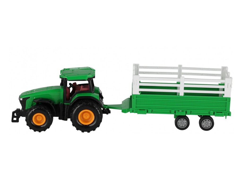 Traktor s vlečkou 31cmTraktor má funkciu naťahovania dozadu, takže po zatlačení vozidla dopredu môžete pokračovať v jazde na vlastnú päsť. Poľnohospodársky stroj pripojený k traktoru má pohyblivé časti. Traktor je dostupný v troch farbách: modrá, červená a zelená. Hračka vyrobená z plastu.Odporúčaný vek: 3+