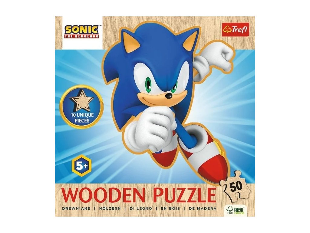TREFL Drevené obrysové puzzle Sonic: Veselý Sonic 50 dielikov