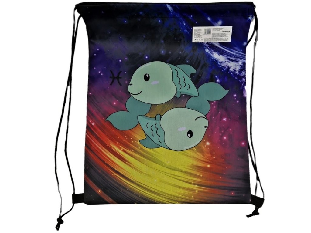 Vak na prezúvky ZodiakPekné a praktické vrecúško pre deti. Má všestranné využitie. Je vhodné nielen do školy na prezúvky, športovú obuv ale tiež na malé výlety, turistiku a pod. Rozmery : 34 x 42 cmMotívy 12 druhov, podľa znamenia zverokruhu - baran, býk, blíženci, rak, lev, panna, váhy, škorpión, strelec, kozorožec, vodnár, ryby (motív prosím uveďte do poznámky)