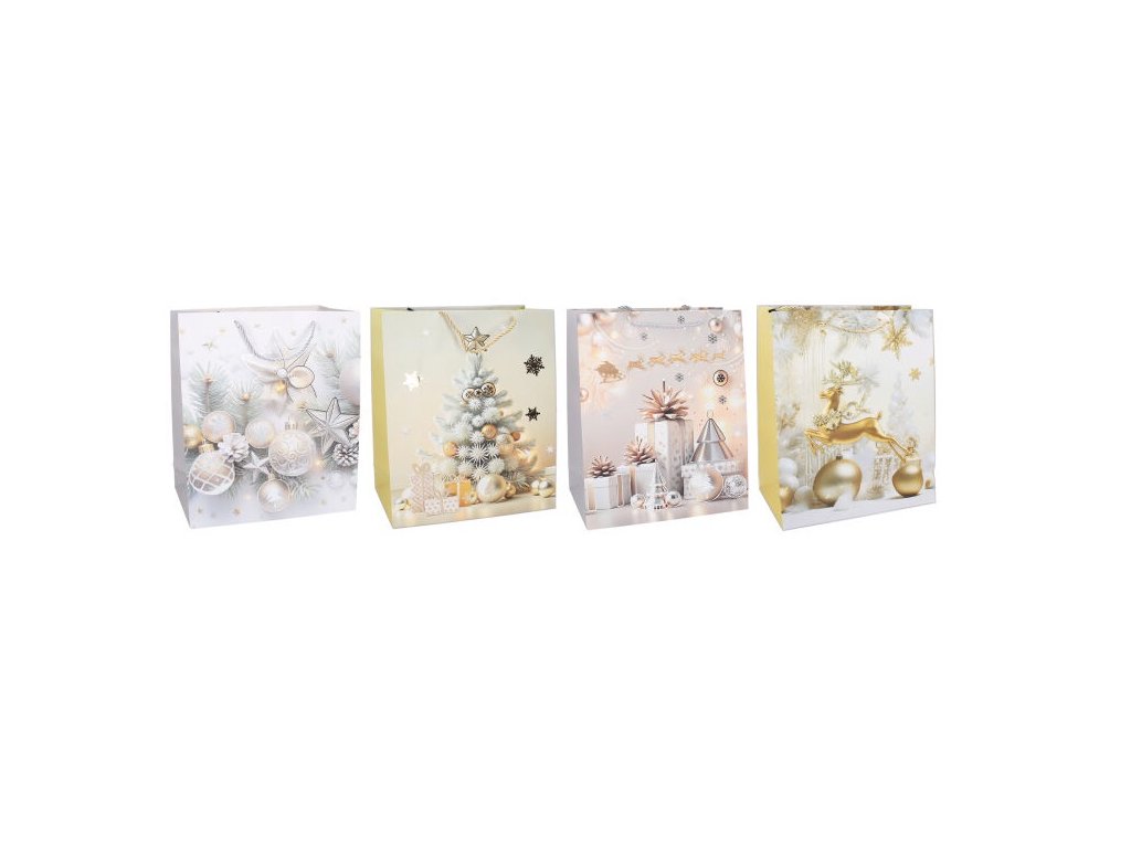Vianočná darčeková taška 18x8x24cmDarčeková vianočná taška vyrobená z kvalitného tvrdého papiera, vhodná na jednoduché balenie suvenírov a darčekov. Rozmery : 18 x 8 x 24 cmUvedená cena je za 1 ksPosielame náhodným výberom podľa skladovej dostupnosti. Ak si želáte konkrétny motív, napíšte do poznámky pri objednávke.V prípade záujmu o celé balenie obsah 12 ks mix motívov