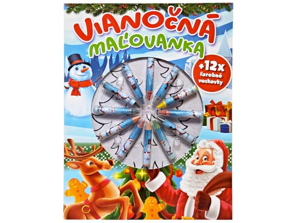 Vianočná maľovankaVianočná maľovanka + 12xfarebné voskovky. Rozmery :21,5 x 28 cm