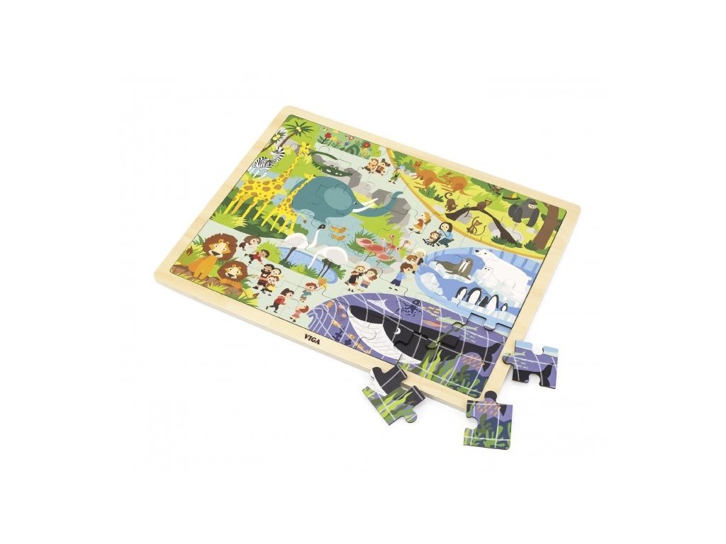 Viga Drevené puzzle Zoo 48ksDrevené puzzle rozvíjajú kreativitu a tvorivosť vášho dieťaťa. Obrázkové puzzle, sú vyrobené z 48 dielikov kvalitného dreva. Trénujú vizuálnu pamäťUčia manuálnej zručnosti a trpezlivostiPočet dielov: 48 ksOdporúčaný vek: 24m +