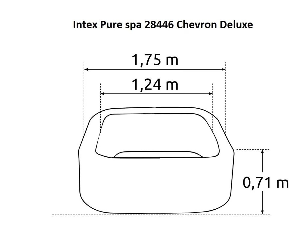 Vírivka Intex 28446NP Pure Spa Chevron Deluxe pre 4 ososbyIntex Nafukovacia vírivka Pure Spa Chevron Deluxe model 2025 zaručuje relaxáciu bez toho, aby ste opustili svoj domov. Vírivka ponúka výnimočný luxus a pohodlie pre 4 osoby. Môže byť nainštalovaná vo vnútri aj mimo domu. PureSpa má filtračné čerpadlo, vykurovacie zariadenie a užívateľsky prívetivý ovládací panel. Bola tiež vybavená integrovaným systémom slanej vody a ochrany vodného kameňa, ktorý zabraňuje usadzovaniu vodného kameňa a udržuje vodu čistú a mäkkú. Je vyrobená z 3-vrstvového materiálu SUPER-TOUGH, ktorý je odolný proti slnečnému žiareniu a slanej vode. Vírivka disponuje konštrukciou 47 FIBER-TECH BEAMS (silné polyesterové vlákna).Vírivka je veľmi stabilná, pretože bola vyrobená pomocou vysoko kvalitnej technológie vlákien. Táto metóda je založená na použití niekoľkých vlákien, ktoré zaručujú trvanlivosť a stabilitu konštrukcie. Je tiež vybavená dvoma držadlami, ktoré uľahčujú prepravu vírivky. Termostat udržuje teplotu vody na požadovanej cieľovej teplote až do 40 stupňov teploty vody. Vykurovací systém sa automaticky zapne, keď teplota klesne pod nastavenú hodnotu. Teplota sa zobrazuje v stupňoch Fahrenheita alebo Celzia. Vírivka má 140 vzduchových trysiek, ktoré zaručujú príjemnú a relaxačnú masáž. Pri inštalácii sa spoľahnite na integrovaný systém nafukovania Quickfill– stačí zapojiť do zásuvky a vírivka sa sama nafúkne.Výhody oproti modelom iných výrobcov:Super Tough Trojvrstvový materiál, ktorý je a odolný proti slnečnému žiareniu a slanej vode. Hrúbka materialu 0,84 mmHeated Air Bubbles Technology 140 vzduchových masážnych trysiek - s predhrevom nasávaného vzduchu- stop studeným bublinám útočiacich na Váš chrbát. Modely 2024 využívajú stratové teplo technológie k predohrevu nasávaného vzduchu.ASV automatický odpúšťací ventil, ktorý chráni vírivku pred pretlakom v tele. Nemusíte neustále kontrolovať manometrom prevádzkový tlakBezdrôtové diaľkové ovládanie, ktoré ponúka maximálne pohodlie pri nastavení teploty a spustenie masáže. Na jedno nabitie vydrží až 48 hodín. Vodeodolné prevedenie, takže sa nemusíte báť pádu do vodyElectronic Hard water treatment- elektrické zmäkčovanie vody, znižuje tvorbu vápenatých usadenín na vykurovacom čerpadle a v rúrkach, čo je častý problém dodávateľov vody na väčšine územia SR, 10WSalwater system dezinfekcia slanou vodou. Vírivka je vybavená systémom, ktorý zabezpečuje dezinfekciu vody nie je potrebné používať chlorové prípravkyVírivka má zabudovaný wi-fi modul, vďaka jeho prepojeniu s mobilnou aplikáciou z Google play / App store si môžete všetky funkcie a nastavenia ovládať na diaľku odkiaľkoľvek. Dokonalý relaxačný kúpeľ tak stihnete pripraviť ešte pred Vaším príchodom. Vonkajší rozmer 211 × 211 cm (merané uhlopriečne)Vnútorný rozmer 160 × 160 cm (merané uhlopriečne)Výška : 71 cmNastavenie teploty: 20-40 ° CHmotnosť : 50,8 kgObjem: 795 lPočet osôb: 4Vzduchové čerpadlo: 800 W/220-240 VHard water system: 10 WSystém so slanou vodou: 20 WOhrev vody: 2200 W/220-240 VČas ohrevu cca 1,5-2,5 ° C / hodPrietok vody: 1741l/hPočet vzduchových trysiek: 140 s predohrevom vzduchuFarba: ChevronTvar: štvorecNevhodné pre deti do 3 rokovObsah balenia:Vírivka Pure Spa Chevron DeluxeTermoizolačný krytTermoizolačná podložkaFilter Prenosná taška